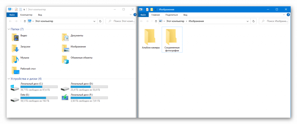 Теперь, когда мы убедились, что прикрепление окон активно можно перейти непосредственно к разделению экрана. Разделить экран на 2 части в Windows 10 можно следующим образом: