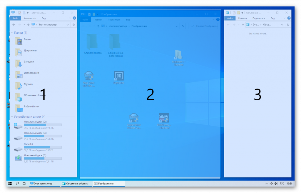 Способ №1: Разделение экрана при помощи функции прикрепления окон в Windows 10