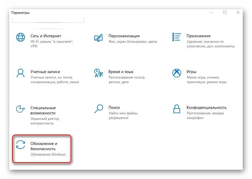 - В параметрах переходим в раздел «Обновление и безопасность».