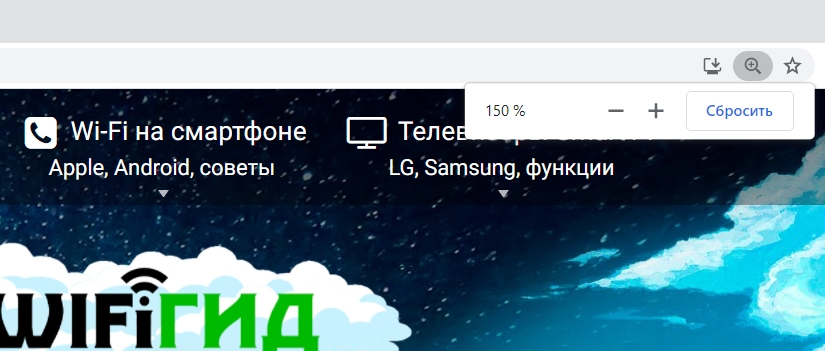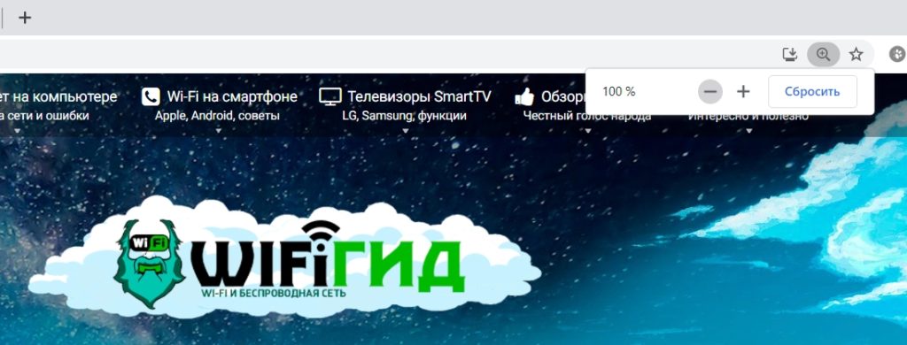 Почти в каждом браузере правее адресной строки есть иконка лупы – нажмите по ней и выберите нужное увеличение. Вы также можете сбросить масштаб до настроек по умолчанию.