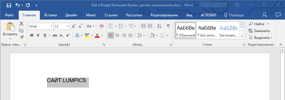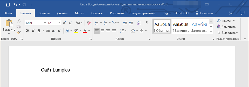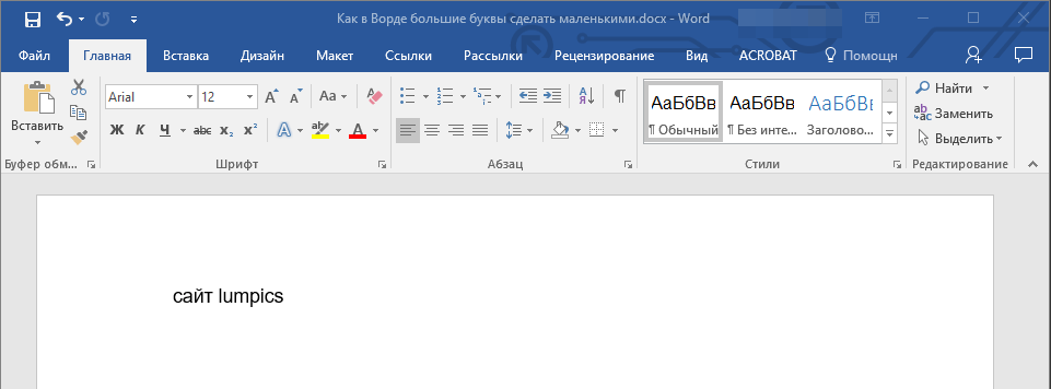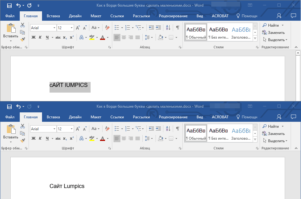 Как видите, с помощью горячих клавиш превратить большие буквы в маленькие можно еще быстрее, чем это позволяет делать кнопка «Регистр» на ленте с инструментами. Единственный недостаток данного подхода заключается в том, что таким образом нельзя «иЗМЕНИТЬ РЕГИСТР» на противоположный.