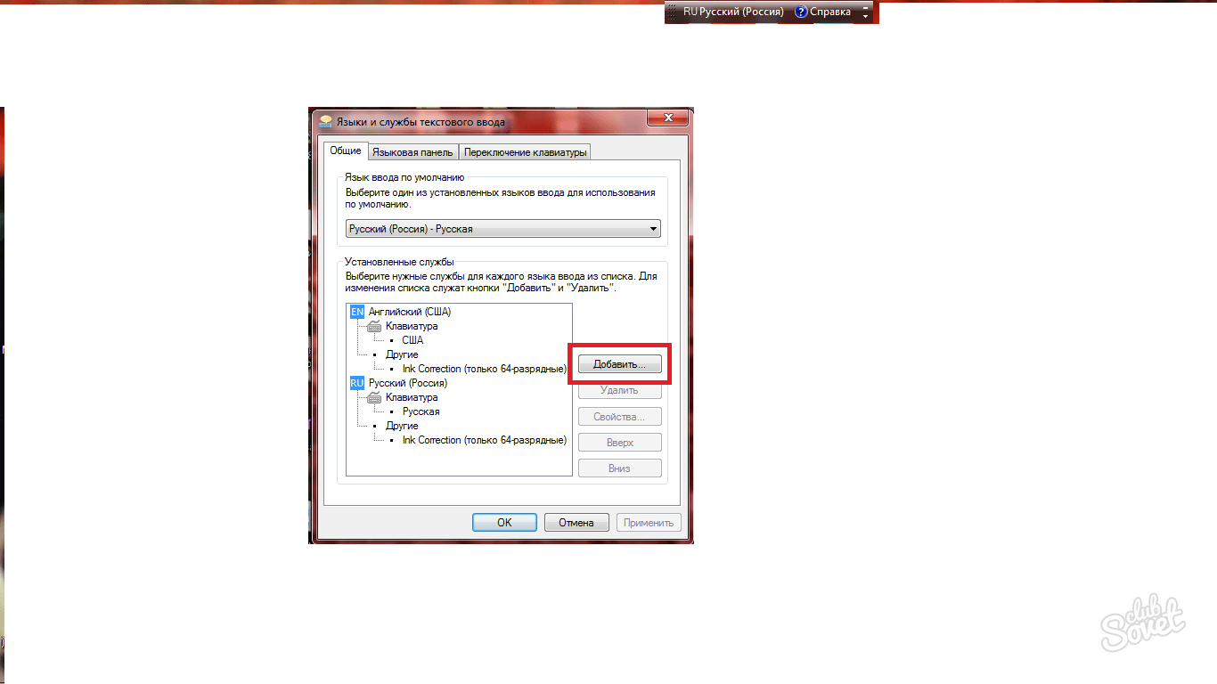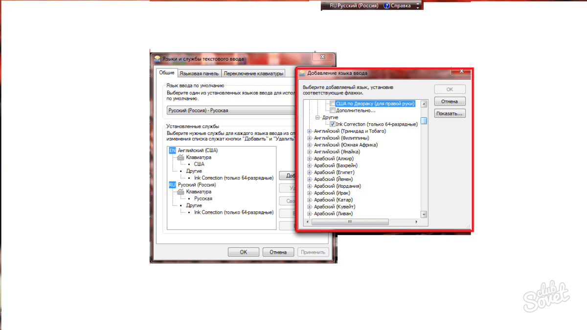 Установка языковой панели для смены языка в панели задач