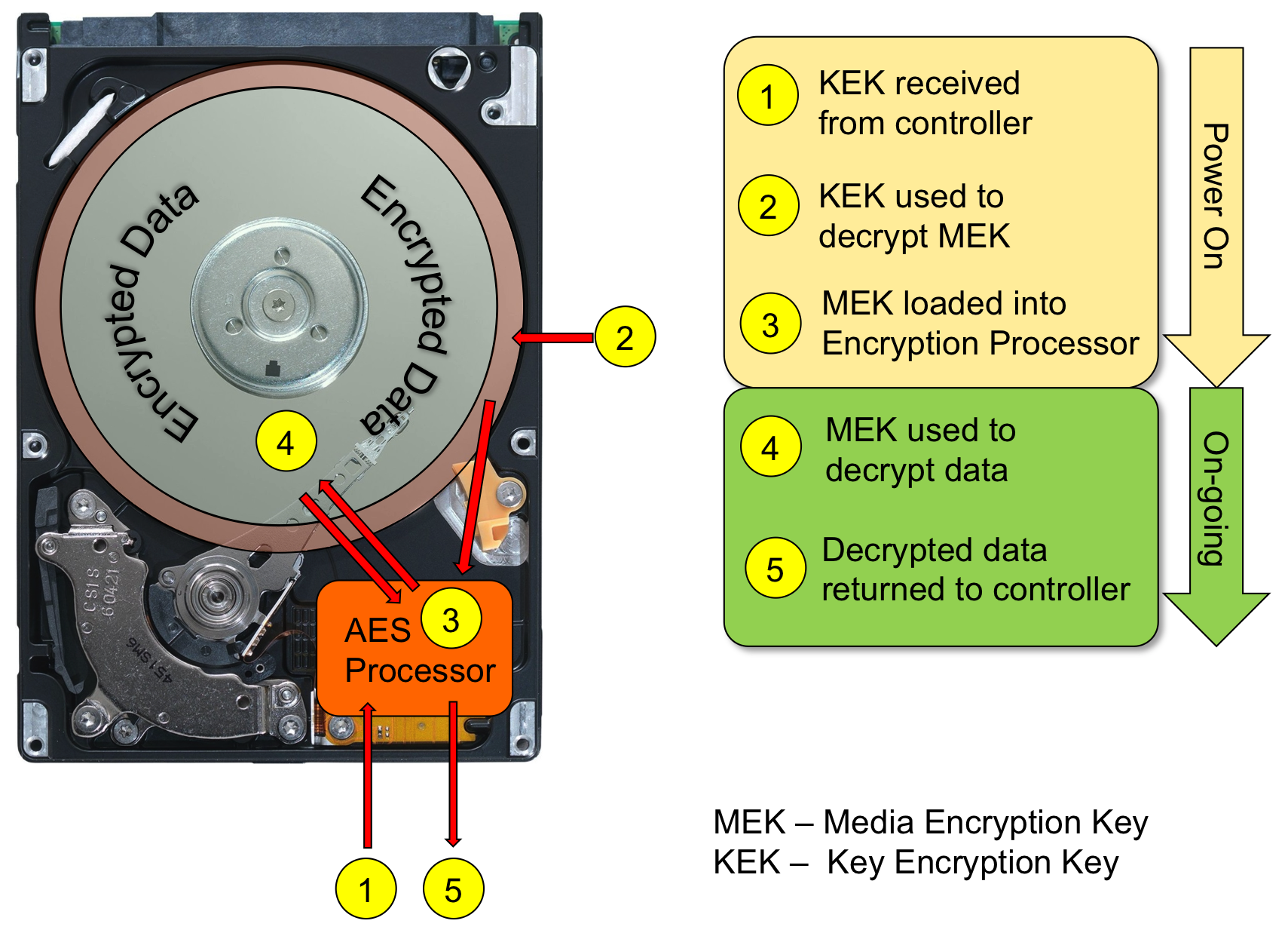 Принцип работы жёсткого диска с аппаратным шифрованием с установленным паролем.
