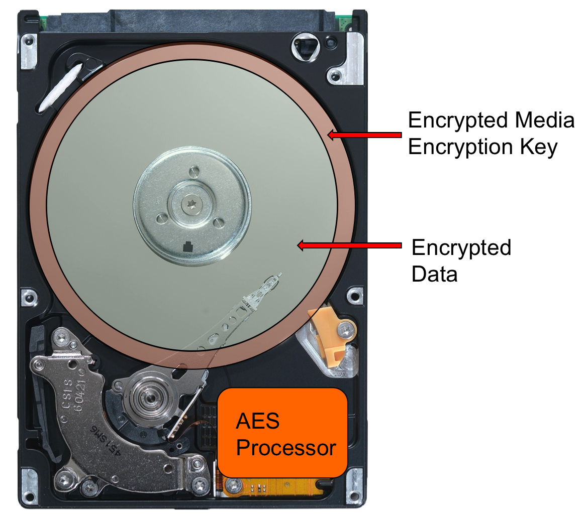 Нас же сейчас интересует другая особенность таких дисков, а именно — мгновенное и безвозвратное уничтожение данных. Реализовано это через стандартную команду ATA Secure Erase, которую можно выполнить через стандартную команду hdparm. Для магнитных накопителей, использующих аппаратное шифрование, команда Secure Erase мгновенно уничтожит ключ шифрования, что приведёт к невозможности расшифровать записанную на диске информацию. При использовании диском стойкого шифрования с ключом длиной от 128 бит расшифровать данные будет совершенно невозможно.