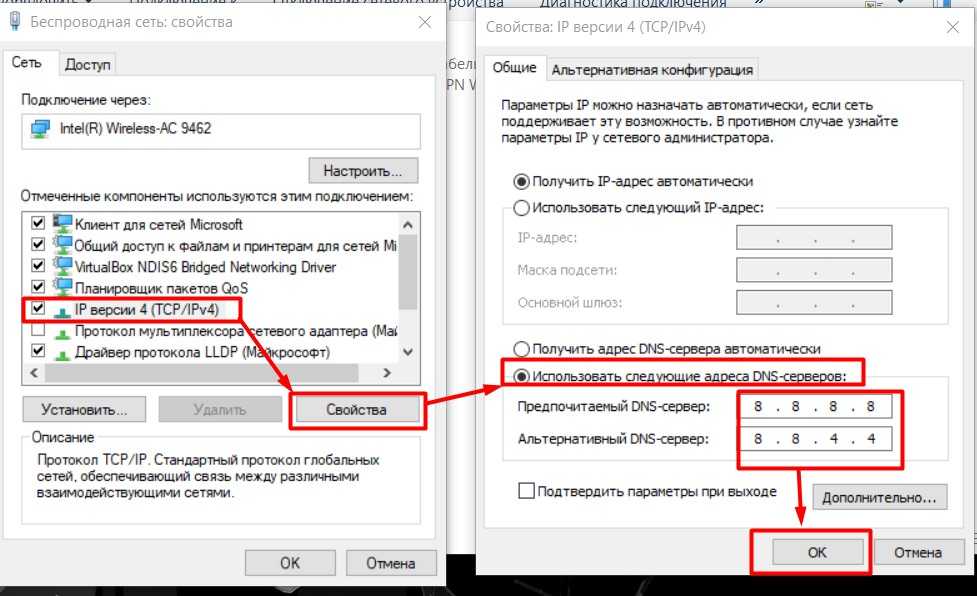 3) Открыть закладку с перечнем, имеющим «протокол интернета (TCP/IP)», где прописаны действующие наименования серверов, которые можно корректировать и вводить предпочитаемые и альтернативные DNS адреса;