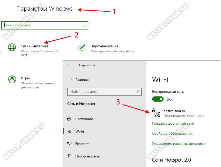 Кликаем по кнопке «Пуск» и в открывшемся меню выбираем значок с шестерёнкой, чтобы открыть параметры Windows 10. Нас интересует раздел «Сеть и Интернет»: