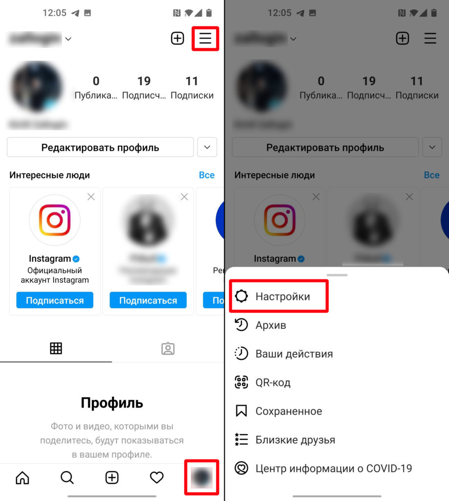 Нажимаем по аватарке с именем и заходим в «Настройки».