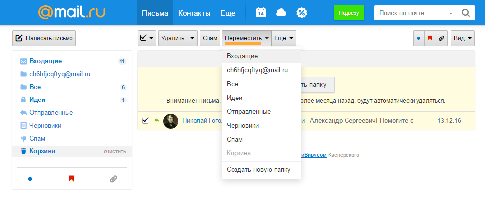 Внимание! К сожалению, переадресовывать письма из папки «Спам» не получится. Для них придется создать отдельное правило