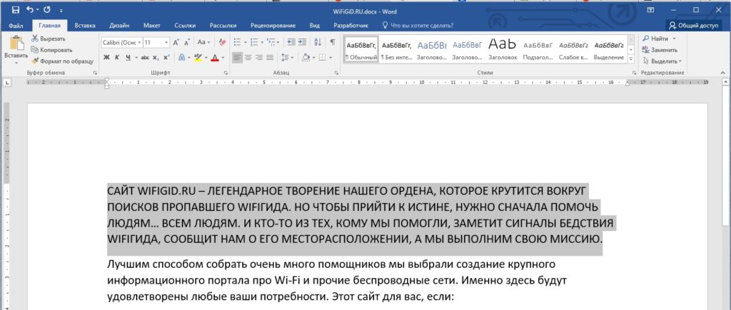 Наверное, самый часто-встречающийся вариант (т.к. многие работают с текстом именно в Word). И так, в качестве примера я взял начало этой статьи и набрал ее заглавным регистром букв (все буквы прописные). Чтобы ничего не перепечатывать заново я просто сделал следующее: