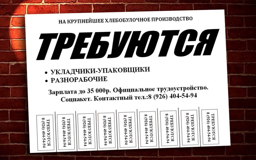 Существуют два типа объявлений: информационные и отрывные. Второй вариант необходим для того, чтобы потенциальный «клиент» мог оторвать кусочек с телефонным номером. Это поможет не забыть его и позвонить в любое удобное время.