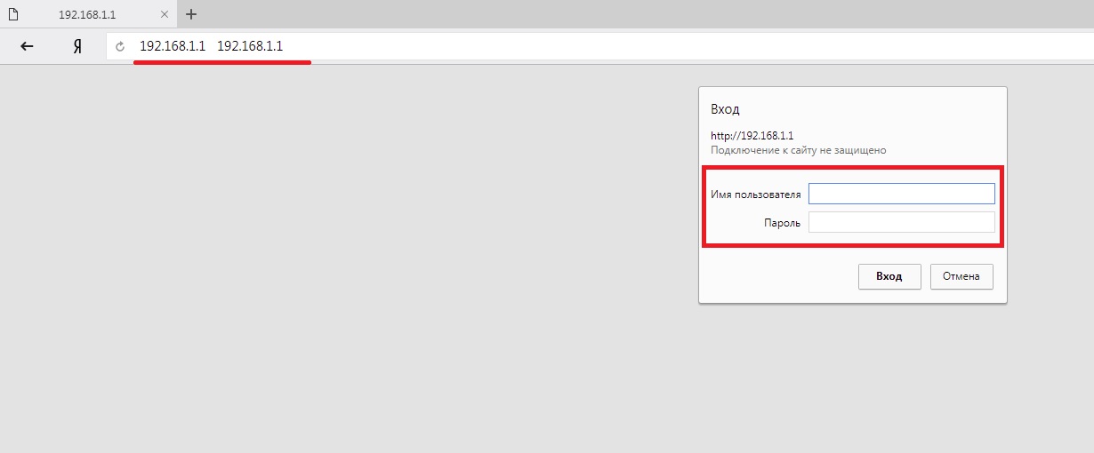 - Ввести в поисковую строку IP-адрес, например, 192.168.1.1 или 192.168.0.1.