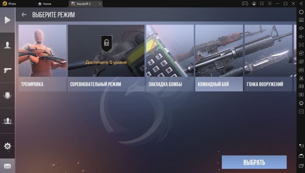 Выбор оружия в игре Standoff 2 на Bluestacks