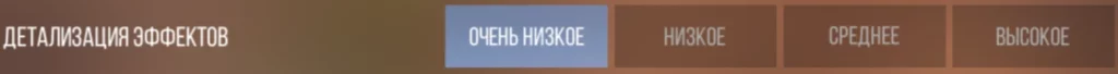 Процесс улучшения различных эффектов, таких как взрывы, выстрелы, вспышки, плотность дыма и другие спецэффекты, чтобы они выглядели более реалистично и привлекательно. Пункт, который стоит выставить на «Очень низкое», все эффекты только отвлекают от игры и не позволят нормально сосредотачиваться.