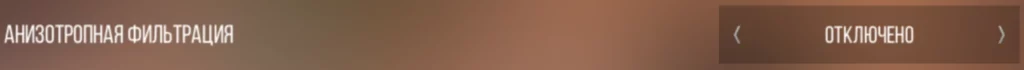 Специальная технология обеспечивающая более чёткое и детальное изображение за счет оптимизации процесса отрисовки текстур в зависимости от угла обзора игрока. Изменение этой настройки почти незаметно, но можно заметить на очень дальних дистанциях. Этот пункт выставляйте на «Отключено».