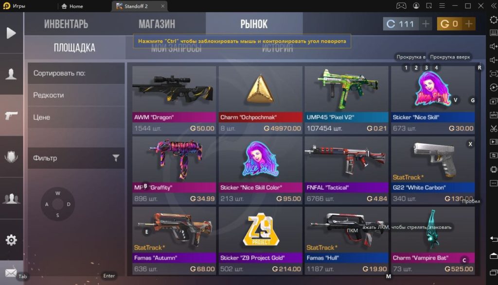 Для данной игры в LDPlayer уже существуют готовые настройки, а соответствующую подсказку вы увидите при первом запуске. Так, для того, чтобы убрать курсор и начать управлять камерой при помощи движений мыши, достаточно нажать на Ctrl, а выстрелы будут производиться левой кнопкой мыши, тогда как прицел вызывается кликом по правой кнопке. Прочие настройки также вполне традиционны.