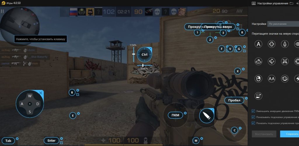 Настройка шифта в Стандофф 2 на ПК BlueStacks