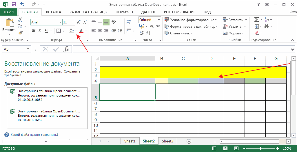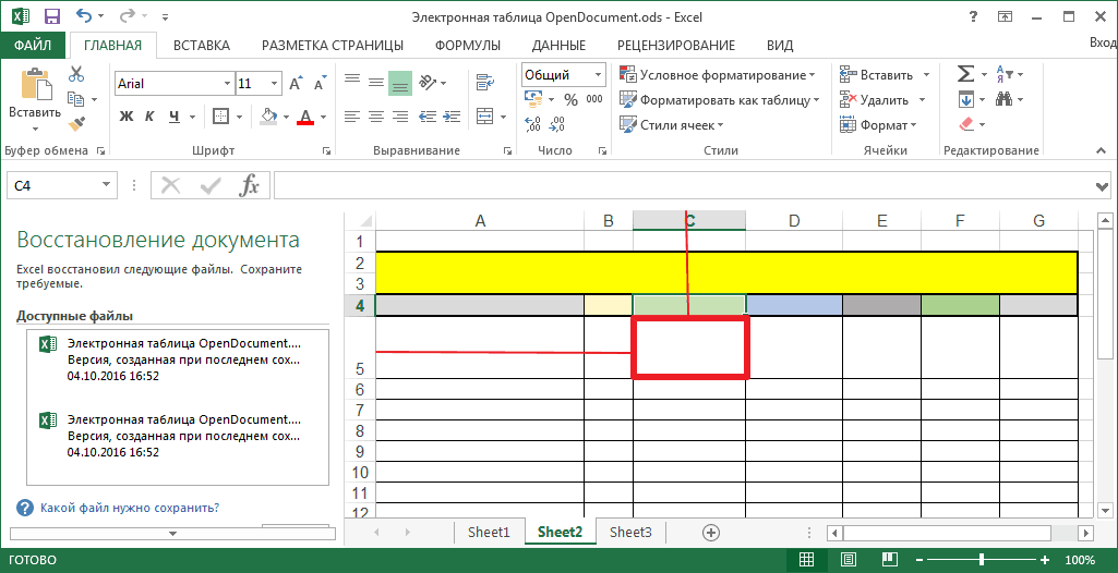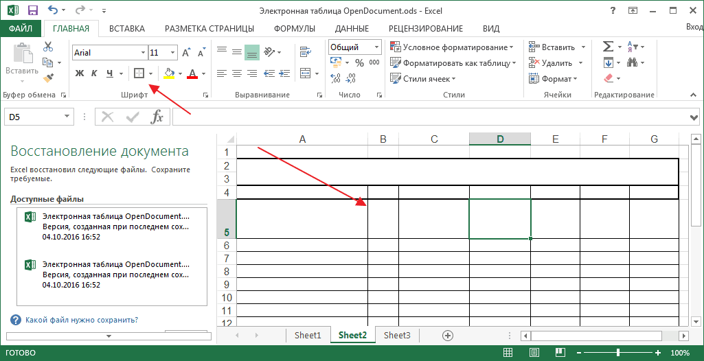 Интерфейс Excel