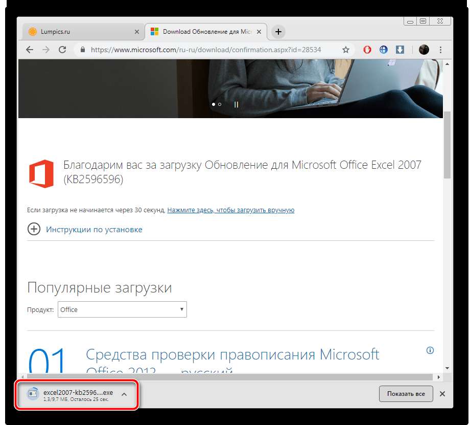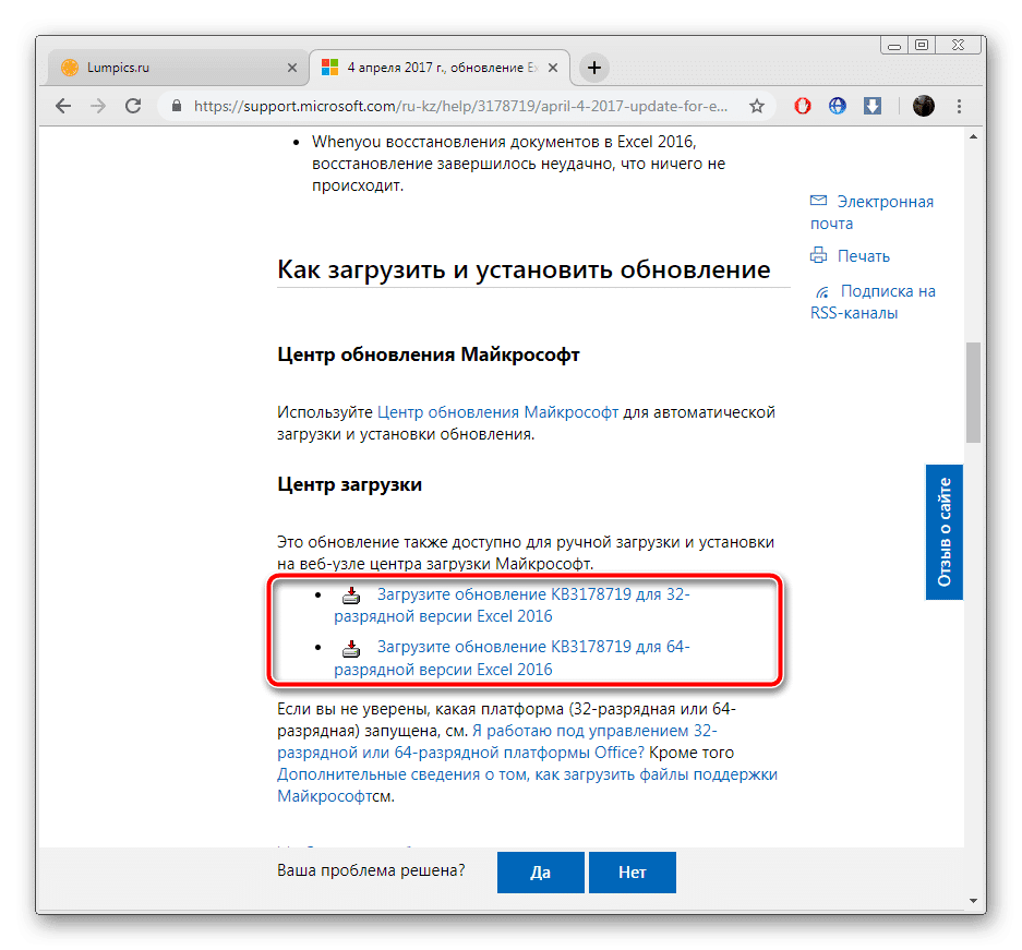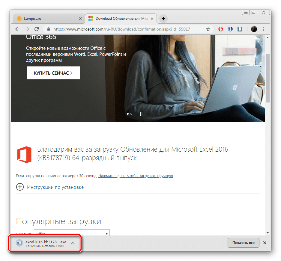 Обновление актуальных версий Excel