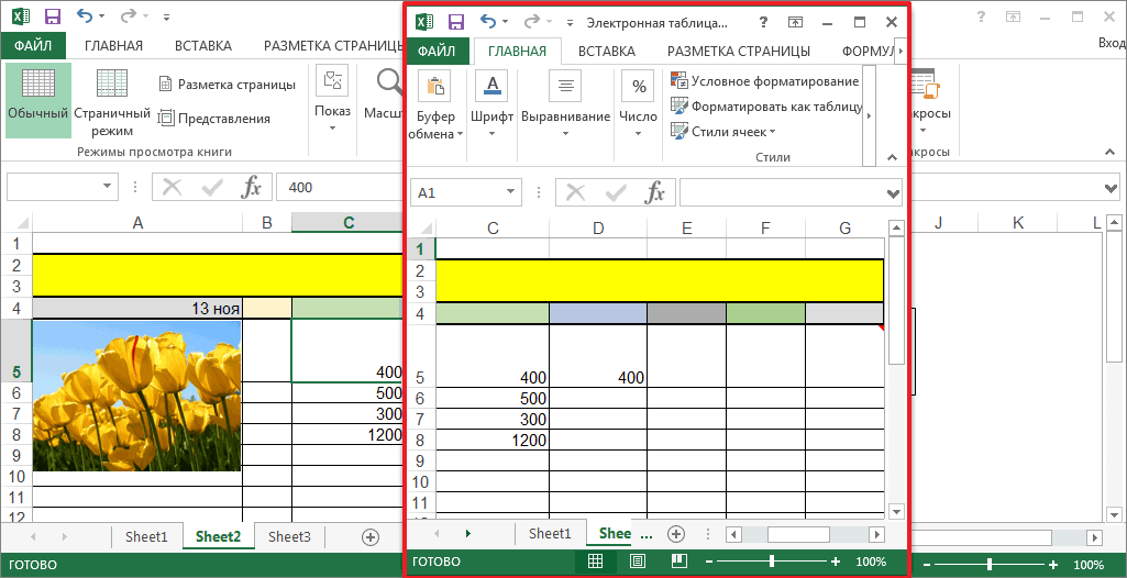 теперь несколько скрытых листов могут отображаться на экране или мониторе одновременно