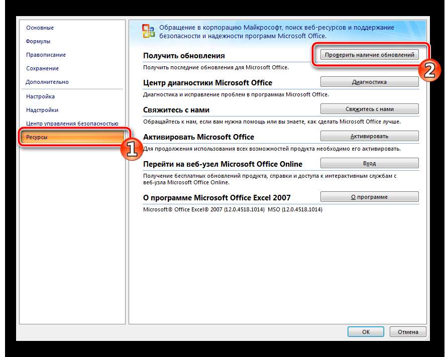 Версия 2010 и все более поздние в настоящее время поддерживаются, поэтому для них регулярно выпускаются исправления и нововведения. Хотя Excel 2007 не поддерживается, обновления также доступны. Процесс установки описан во второй части нашей статьи. Поиск и установка во всех текущих сборках, кроме 2010, производятся одинаково. Если вы являетесь владельцем указанной версии, вам необходимо перейти на вкладку «Файл», открыть раздел «Справка» и нажать «Проверить наличие обновлений». Затем просто следуйте инструкциям на экране.