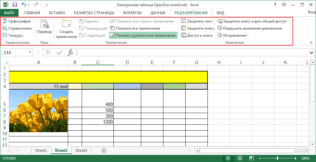 Работа с таблицами и ячейками