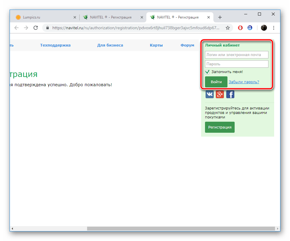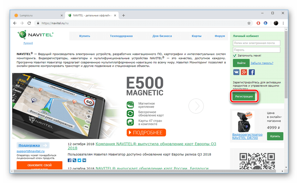 Чтобы обновить навигатор через сайт компании, регистрируются и входят в личный кабинет.