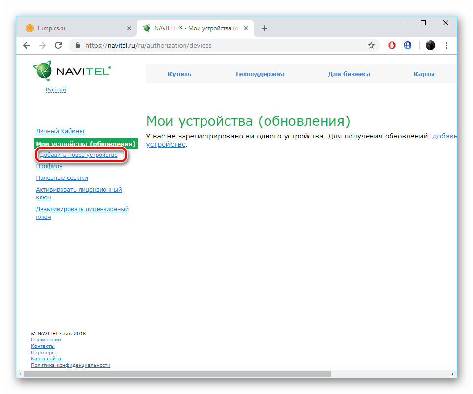 - Зайдите в личный кабинет на сайте NAVITEL . Выберите раздел Мои устройства (обновления) и в столбце Обновить