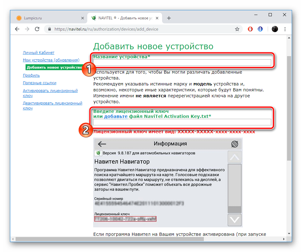 Напечатайте лицензионный ключ либо добавьте указанный файл. Он будет находиться в корневой папке оборудования, поэтому его придется подключить к ПК посредством USB-кабеля и отыскать соответствующий документ.
