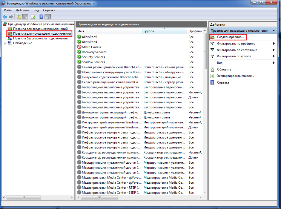 Щелкните левой кнопкой мыши «Правила для исходящего подключения» в меню слева и выберите «Создать правило».