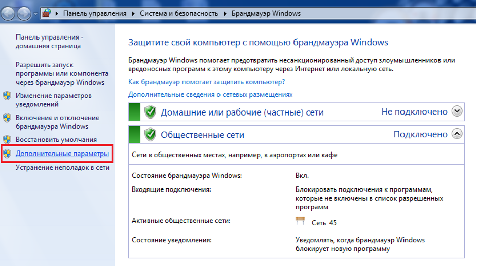Откройте меню «Пуск». В строке поиска введите «Брандмауэр» и откройте «Брандмауэр Windows», а затем «Дополнительные параметры» на левой панели.
