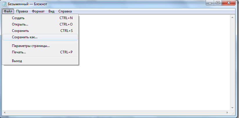 Открываем программу «Блокнот», которая входит в стандартный пакет операционной системы Windows.