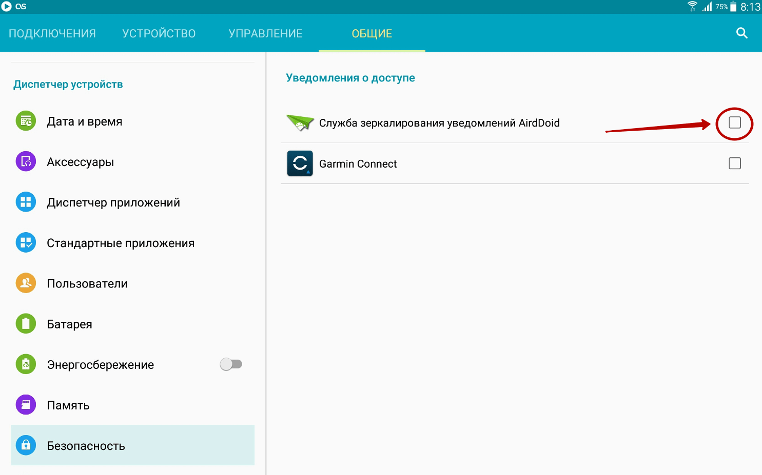 ». В некоторых случаях дополнительно вас перенесут в соответствующий раздел настроек, где около службы зеркалирования уведомлений Airdroid необходимо поставить галочку.