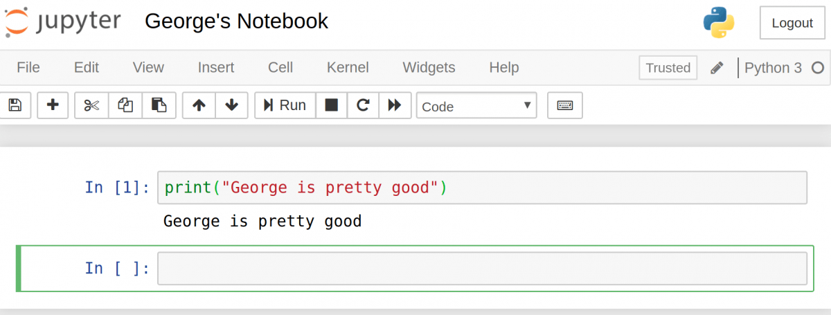 Обратите внимание на то, что в верхней части страницы, рядом с логотипом Jupyter, есть надпись — это название notebook. Его лучше поменять на что-то более понятное