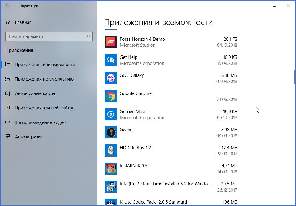 - Теперь откройте вкладку «Приложения и возможности». Здесь расположен полный список установленных программ.