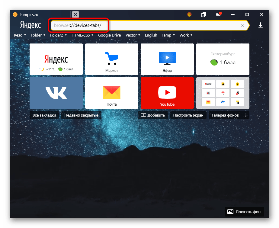 - Просматривают вкладки и закладки. Для этого запускают пункт «Другие устройства» в режиме настроек.
