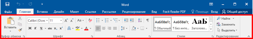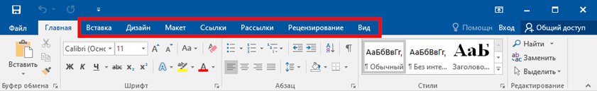Меню редактора Word