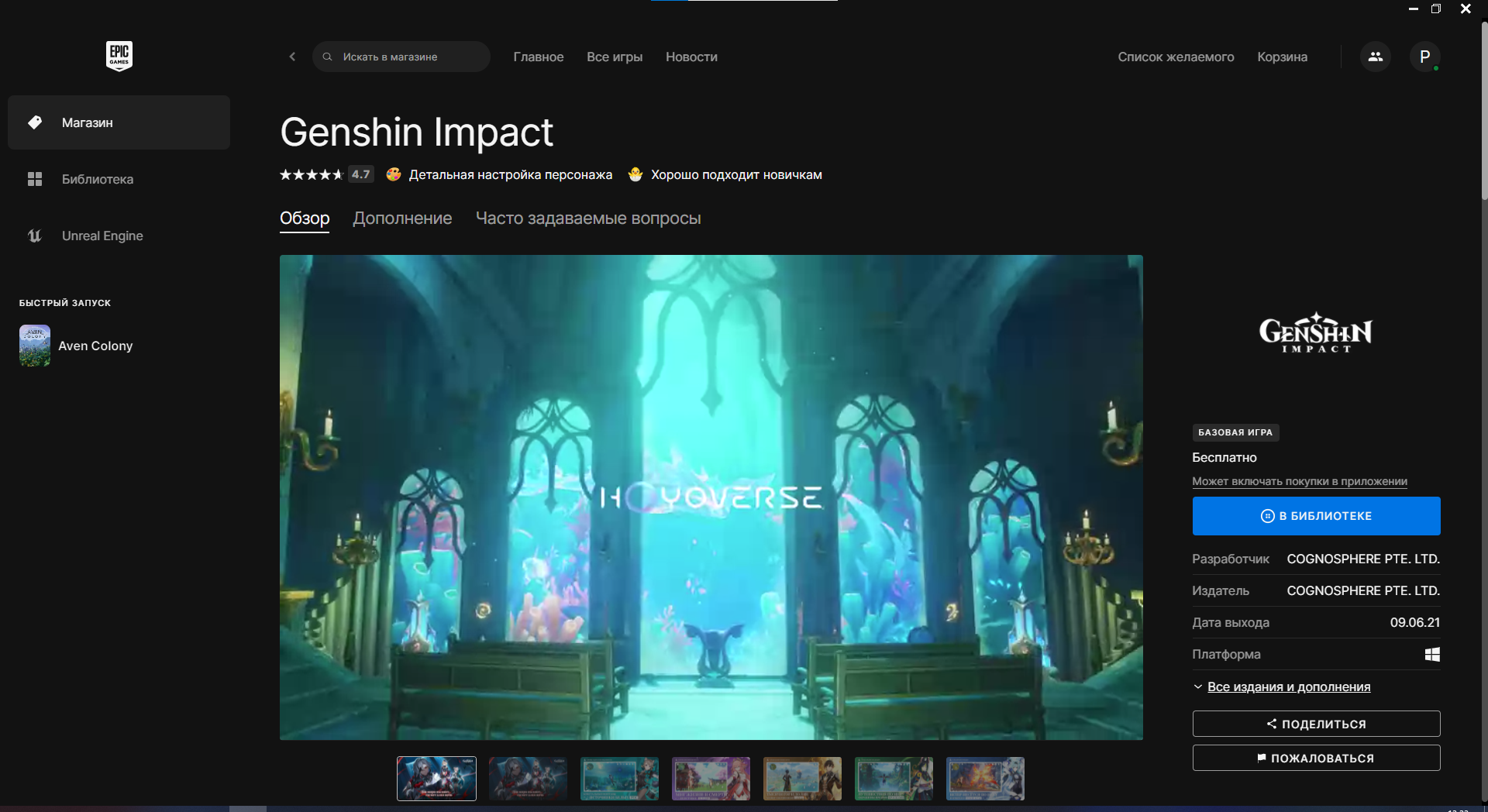 - Вас перекинет на страницу оформления покупки, но, поскольку Genshin Impact бесплатная, сделка будет завершена автоматически и ярлык игры отобразиться в вашей библиотеке.