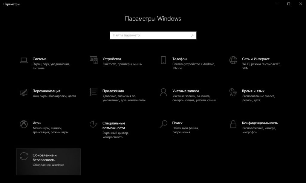 - Обновление и безопасность