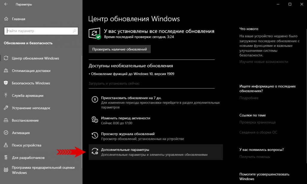 Здесь нам нужна ссылка: «Дополнительные параметры».