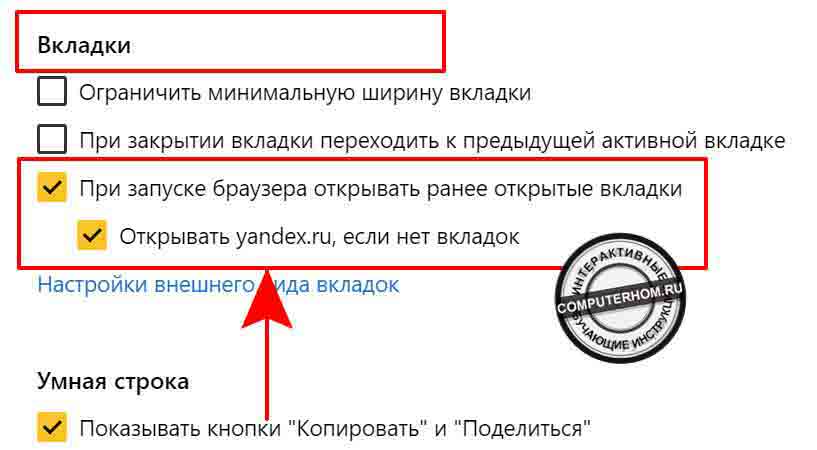 - Для этого вам нужно первым делом убрать галочку с пункта «Открывать yandex.ru, если нет вкладок».