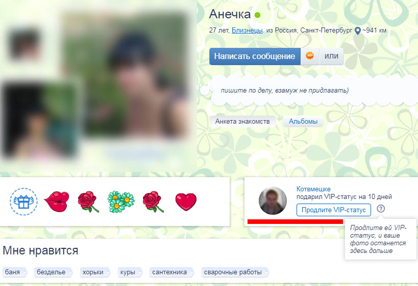 Если вы хотите начать общаться прямо сейчас, вы можете сделать подарок или активировать VIP-статус».
