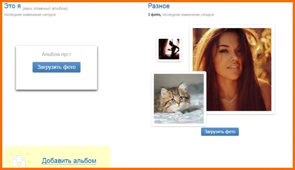 - Если Вы хотите загрузить видеофайл, то на странице «Альбомы» нажмите кнопку загрузить и выберете «Загрузить видеофайл».