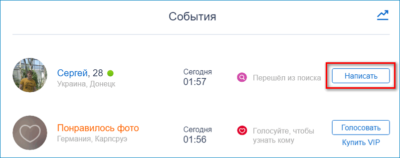 Если вы пока не решились на покупку VIP-статуса, то первые пару десятков анкет можно смело пролистывать. Вероятность того, что вам удастся им написать, крайне мала. Далее в поиске будут анкеты пользователей, которым вам удастся отправить сообщение.