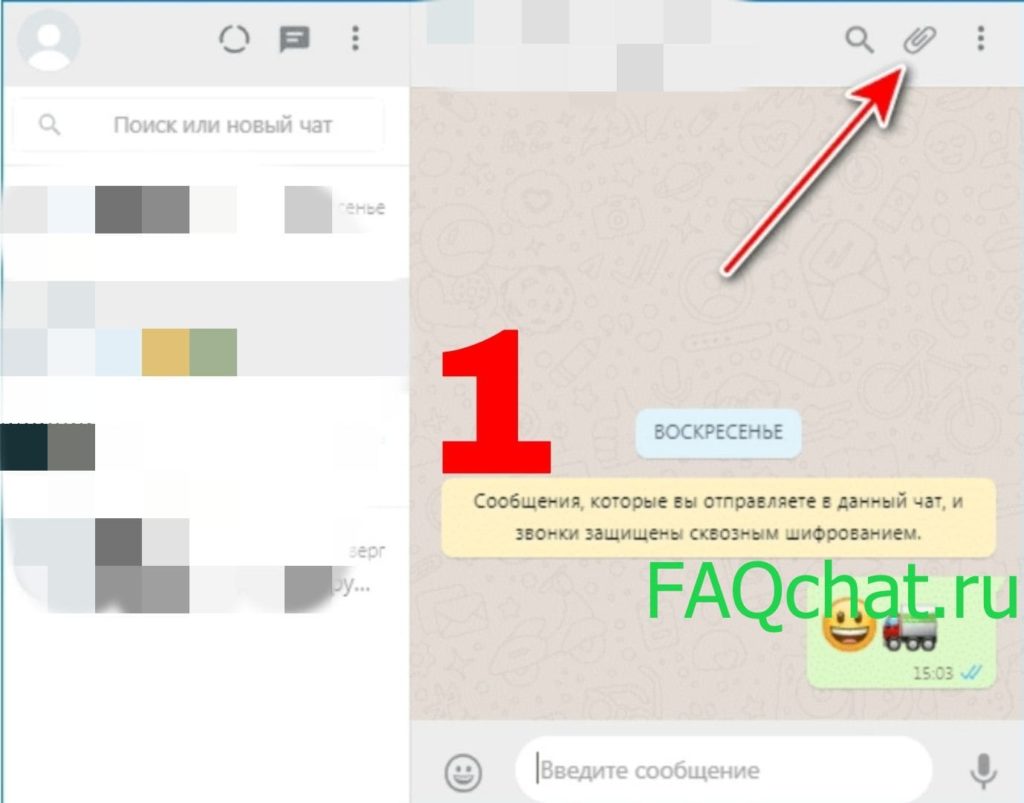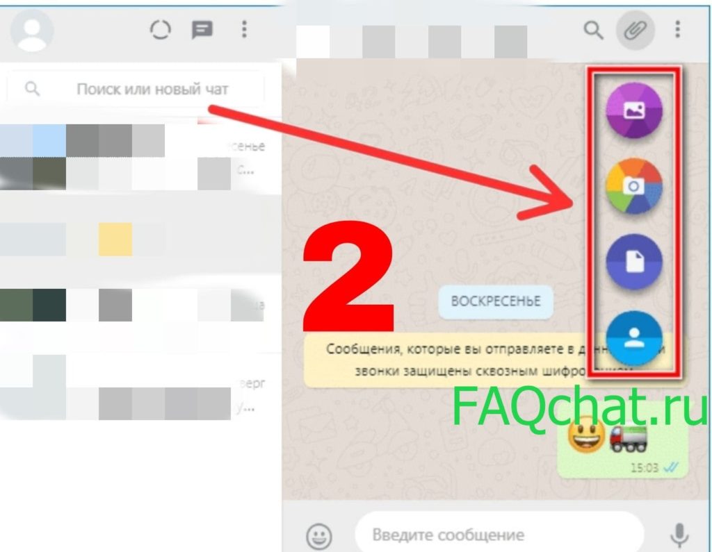 Теперь найдите нужный чат на левой панели – все диалоги синхронизированы с мобильным приложением. Чтобы отправить фото в Ватсап с компьютера, просто кликните на иконку в виде скрепки в окне для ввода текста.