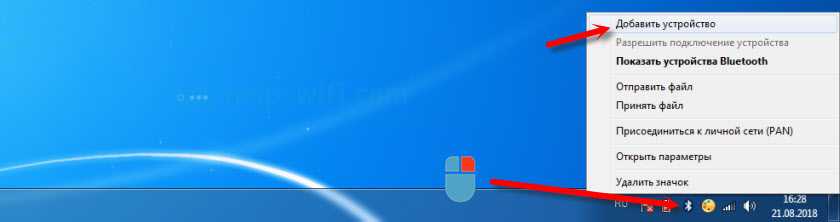 В трее должен быть значок Bluetooth. Щелкните его правой кнопкой мыши и выберите «Добавить устройство».