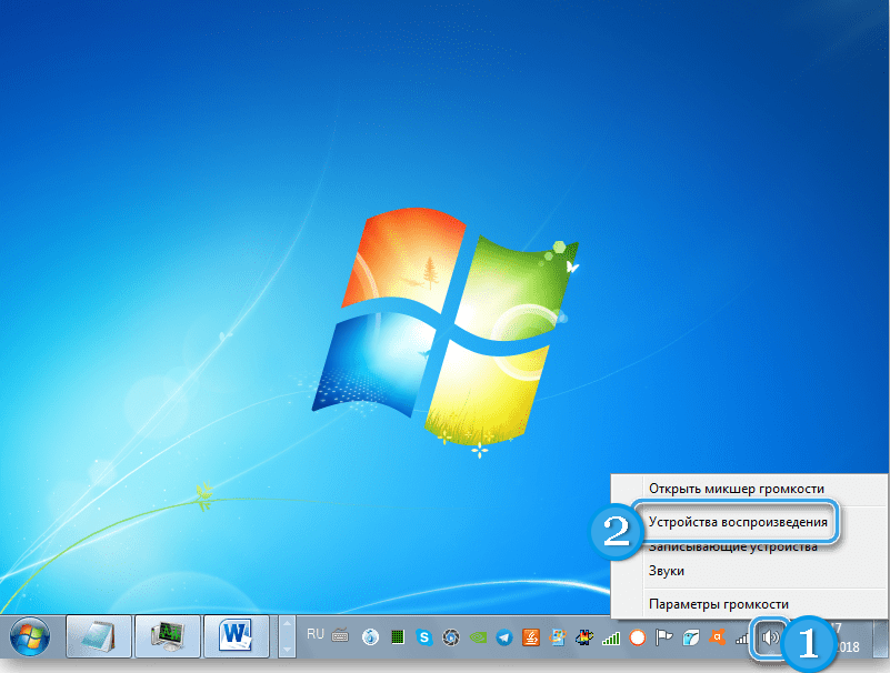 Щелкните правой кнопкой мыши на динамике и выберите «Устройства воспроизведения».