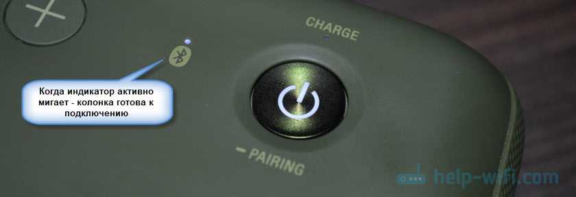 Сначала включаем свою колонку и переводим ее в режим подключения. Нажатием на кнопку «Bluetooth», или кнопку включения. Как правило, нужно нажать и подержать несколько секунд. Индикатор Блютуз должен активно мигать.