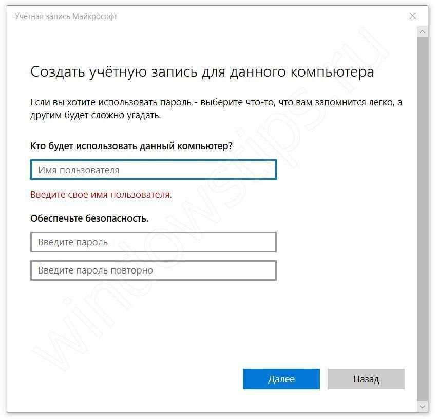 - Пропустите предлагаемые пункты о контактах человека и создании учетной записи Microsoft.