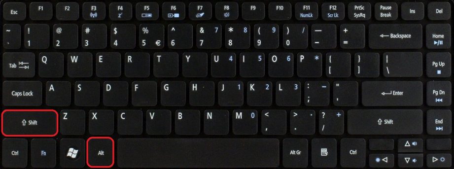 Обратите внимание, что на некоторых компьютерах эту функцию выполняет сочетание кнопок «Ctrl+ Shift»