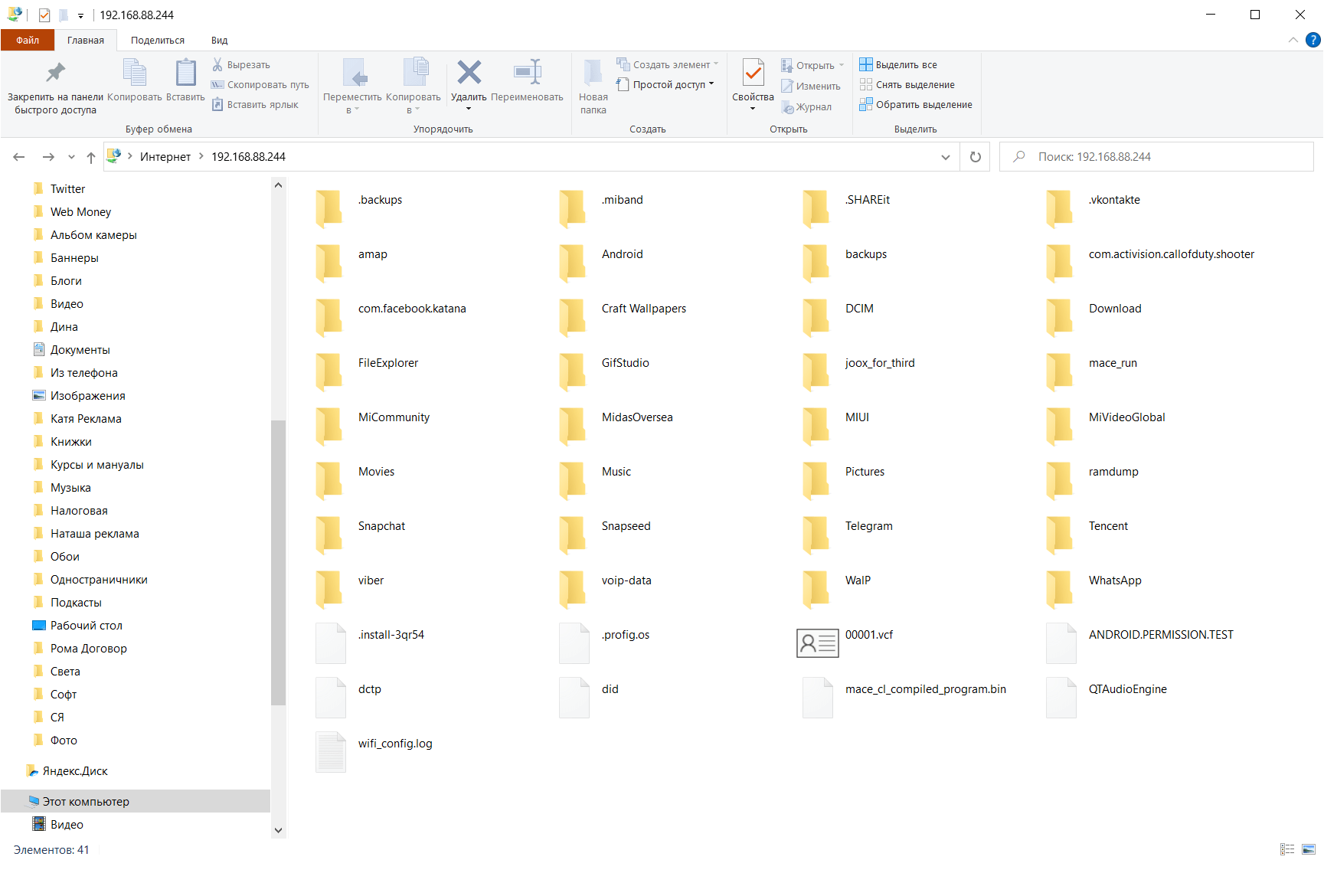 После выбора обычного режима у вас на компьютере откроется окно проводника, где будут видны все папки в памяти Xiaomi, тут вы можете копировать или удалять их по своему усмотрению.
